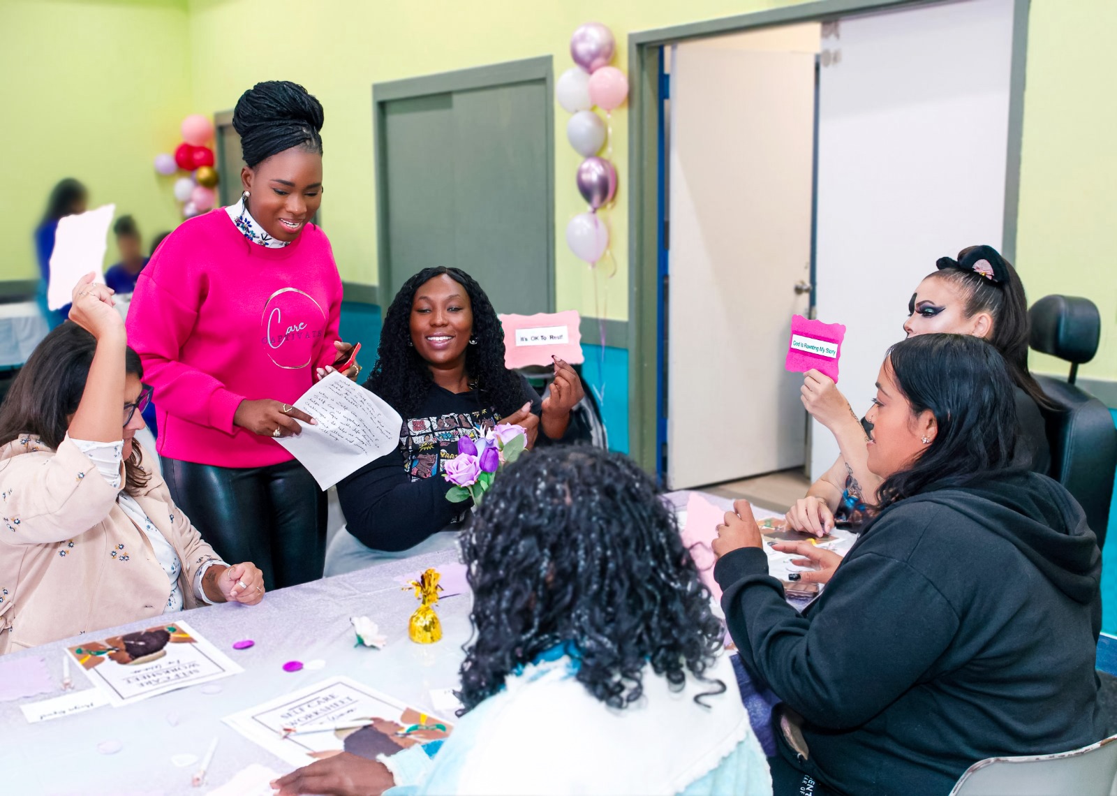 Our signature workshop creates safe spaces where participants reconnect with themselves through beauty, wellness, and community.
